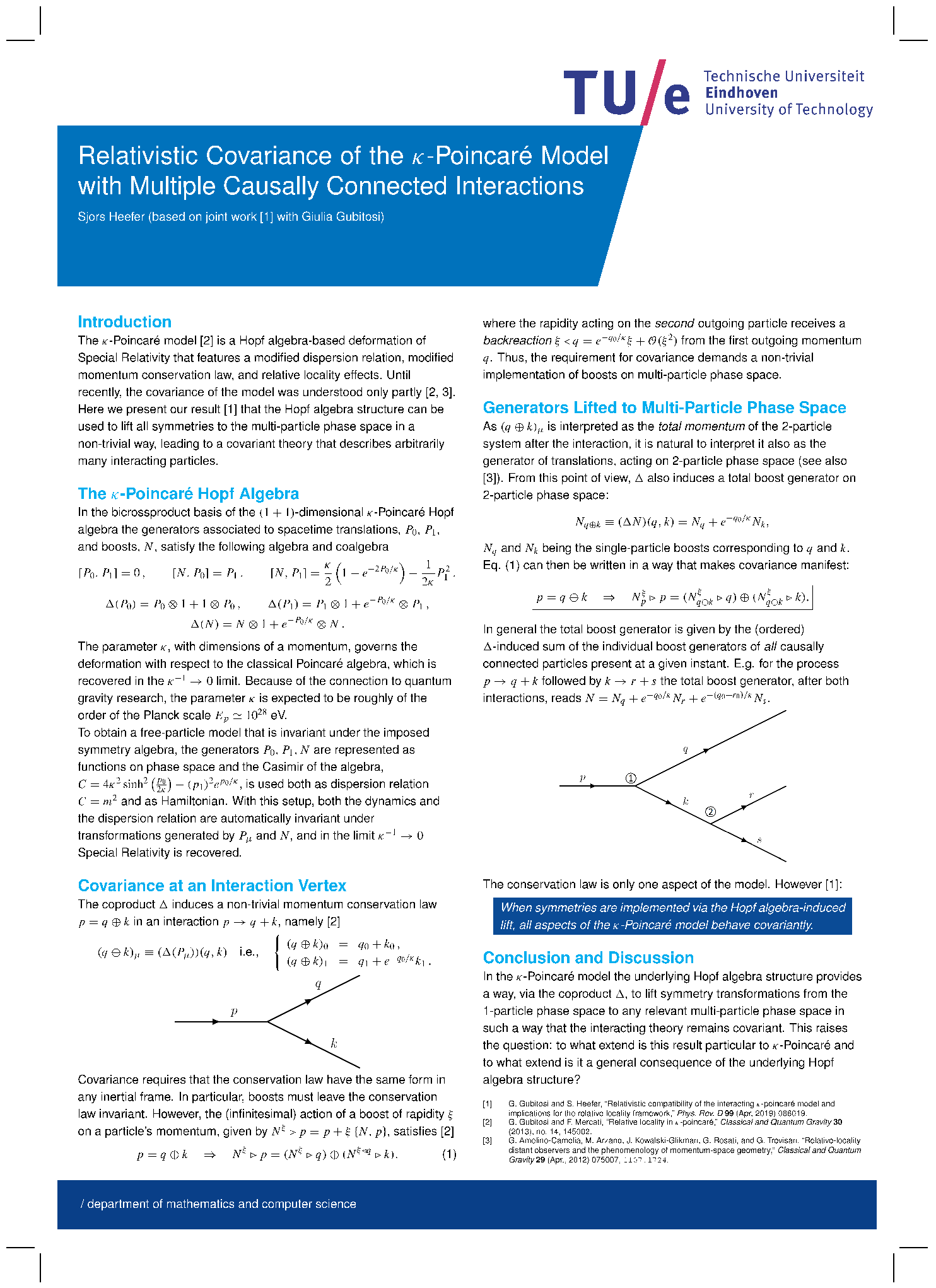 Master's Thesis: Advancements on the Covariance of the κ-Poincaré Model and Relative Locality, 2018 (Supervisors: Giulia Gubitosi, Renate Loll)